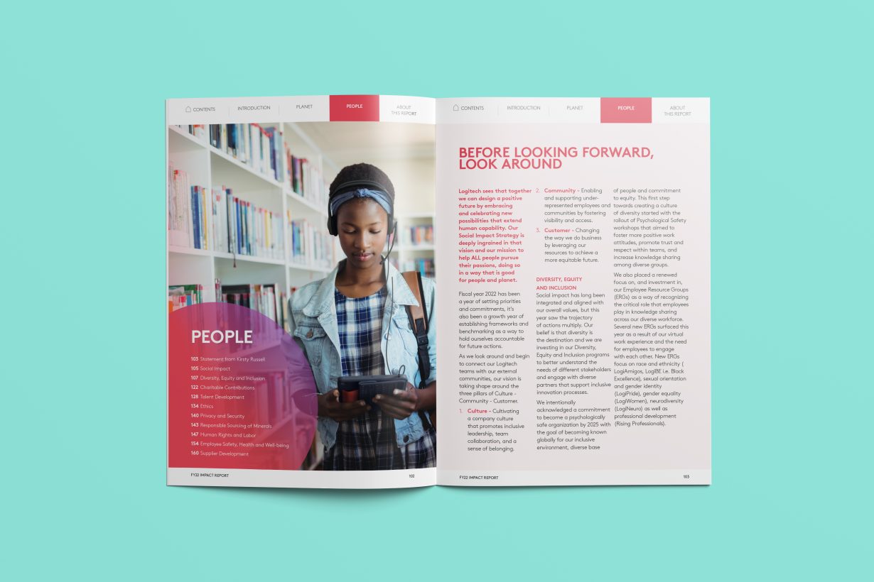 We saw opportunities to reinvent and expand on the report in ways that would spark more engagement in, and commitment to, the vision. We knew we could reach a broader audience by deepening the stories from across Logitech’s network, including the communities that it touches. And with these we could demonstrate the company’s human heart alongside its innovative edge.